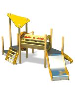 Fantasistimulerende lekeapparat med liten sklie, kort tunnel, klatrenett og bevegelige deler. De nydelige detaljer som roterbare ørene gjør dette lekeapparatet noen spesielt.