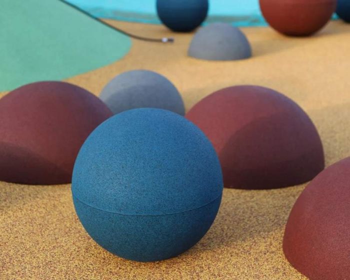 Balansekule Ø 500 mm i resirkulert gummi. Finnes i rød, grønn, grå eller svart farge. Passer barn på flere alderstrinn fra 1 år. Vandalsikre. Myke fargeglade baller er et spennende og funksjonelt innslag i bymiljøer, parker og på lekeplasser. Ballene kan brukes til lek og unike sitteplasser.