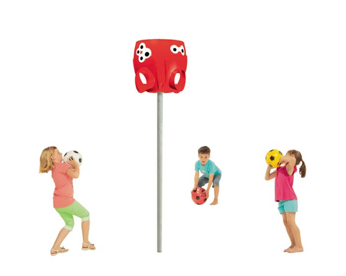 Ball catcher. Du kaster ballen in og det kommer ut. Poengene (1-2-3-4) blir utdelt fra hvilket hjull det kommer ut