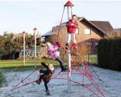 Dere kan finne forskjellige klatrestativer hos oss - fra kompakte tre meter klatrepyramider til åtte meter dobbelt 3D pyramider; fra enkelt to meter Tetra lekestativ til store konstruksjoner som Cosa. Eller rollelek klatrepyramide Piratskip... Mer enn et hundre barn kan klatre og leke samtidig på de største lekestativene våre.