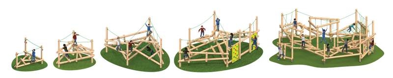 Clamber Stack nyskapende design av både rundstokk og tau gjenoppretter det naturlige, utfordrende og hyggelige lekemiljøet som oppfordrer barn til å utvikle balanse, koordinasjon og fantasi gjennom rollespill på Klatrestokk klatrestativ.