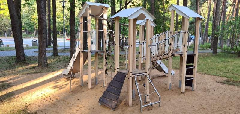 Fem forskjellige FIVE series design lar å tilpasse lekeplassen til enhvert miljøet, uavhengig av om lekestativ blir installert ved siden av et modern hus eller ved en innsjø. FIVE series er moderne lekestativer som tilbyr omfattende funksjonalitet. FIVE er laget av 8 × 8 cm limt trebjelker, impregnert med miljøvennlig vannbasert trebeskyttelsesmiddel for lekeplassutstyr. Andre elementer er laget av HPL (høytrykkslaminat), varmforsinket metall, fester og håndtak av rustfritt stål.