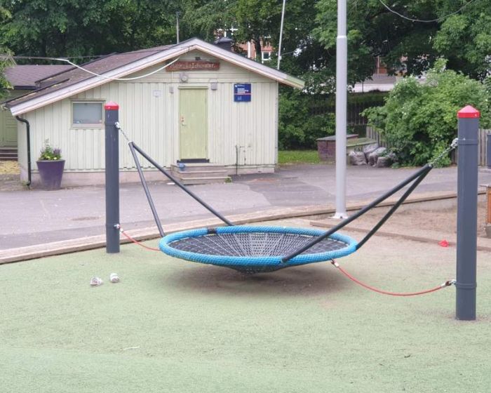 Husket laget av stål- tau- kjede-link matte. Hele konstruksjonen er sertifisert med EN1176.