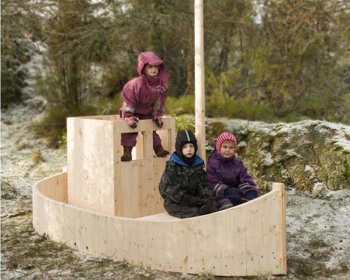 OJ Fiskeskøyte er lekeapparat som gir barna mulighet til å utfolde seg i fantasifull rollelek, et bærekraftig og tradisjonelt lekeapparat som inviterer til spennende eventyr på havet.