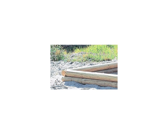 Rundstokk sett for å bygge en sandkasse. Skruer og dukk kommer ikke med og kan kjøpes i nærmeste butikk av byggematerialer.