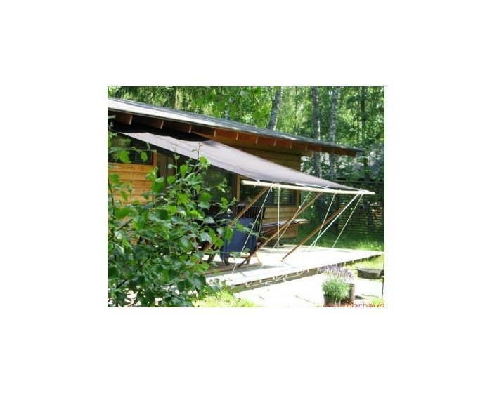 Det store firkantede polyester solseil kan erstatte enhver parasol. Seilet gir et stort skyggeområde og kan monteres på husmur, stolper eller på et tre i hagen.