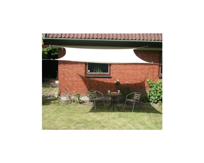 Det store firkantede polyester solseil kan erstatte enhver parasol. Seilet gir et stort skyggeområde og kan monteres på husmur, stolper eller på et tre i hagen.